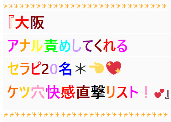 『大阪のアナル責めをしてくれるセラピ』20人の施術内容が