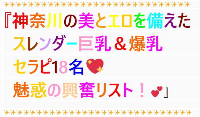 『神奈川のスレンダー巨乳&爆乳ボディを持つ』18名のセラピ施術内容が