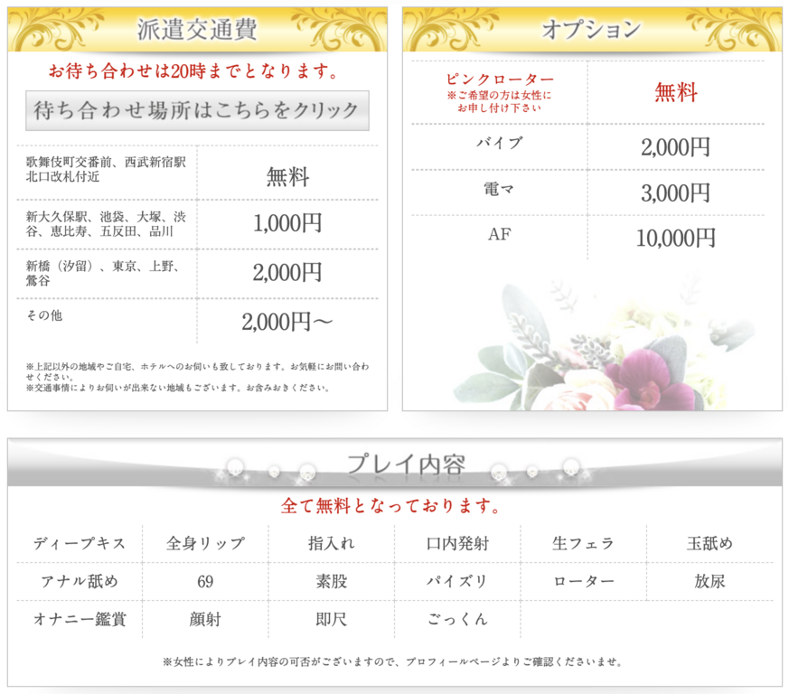 待ち合わせ場所は、西武新宿駅北口 か 大久保病院前の交番 の2パターンが選べるとのこと、