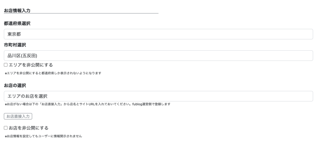 ※お店が存在しない場合は、「お店直接入力」に店名とURLを入れてください。サイト管理者が登録します。