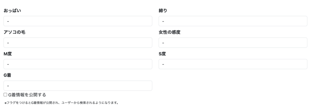 などがあります。上記を入力するとユーザーがどんな女の子かわかりやすくなるので入力をお願いします。