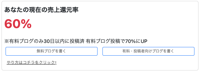 例えば、1000円のブログが売れた場合、還元率が70%であれば700円がブログ投稿者に還元されます。