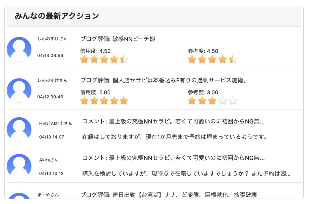 以下のように、ブログを評価するとあなたの評価がサイトトップの最新アクションに表示されます。