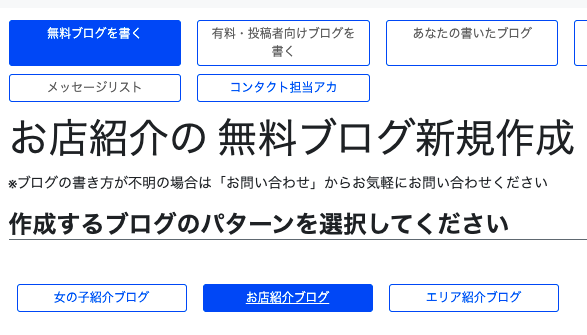 マイページ > 無料ブログを書く > お店紹介ブログ あるいは エリア紹介ブログ