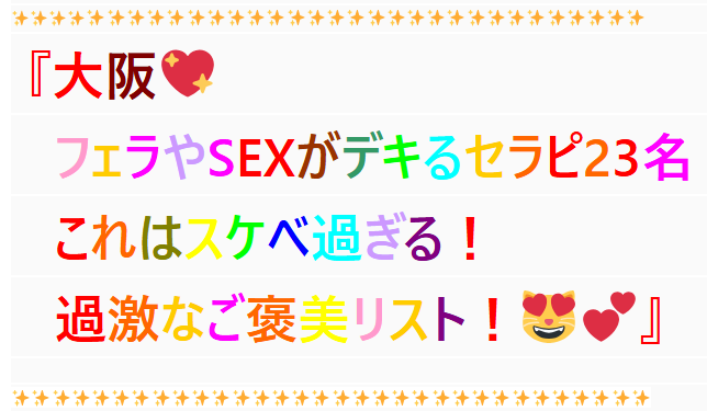 『大阪メンエスのSEX&Fをしてくれるセラピ』23人の施術内容が
